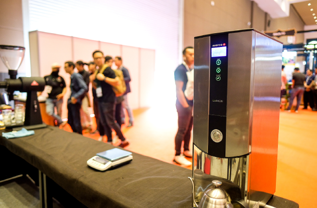 An EcoBoiler from Marco Beverage Systems on display at a roasting competition in Indonesia. Credit: Marco Beverage Systems