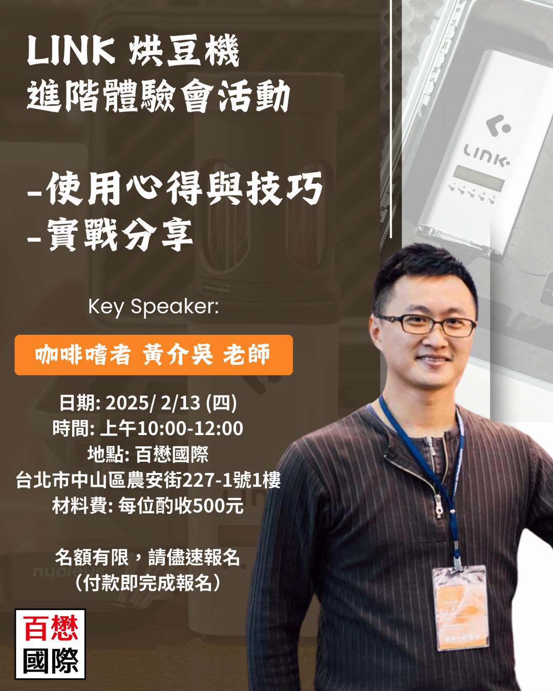 備註:此活動為進階課程,建議已有操作LINK烘豆機經驗的用戶報